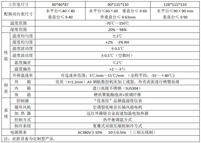 溫濕度振動三綜合試驗機主體部分:主體外殼采用優質A3鋼板并且經過噴塑處理,內膽采用SUS高級不銹鋼鏡面板保溫介質為超細玻璃棉;